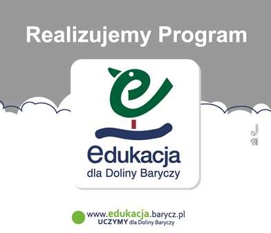 Przycisk elektroniczny "Realizujemy Program Edukacja dla Doliny Baryczy". Prosimy wszystkie podmioty (szkoły, przedszkola, ośrodki edukacji pozaszkolnej) o umieszczenie przycisku na stronie i podlinkowanie serwisu www.edukacja.barycz.pl. Dziękujemy serdecznie