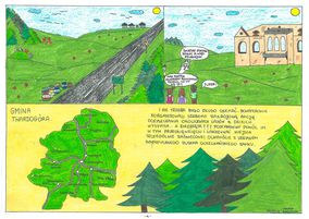 Komiks „Ekologiczny patrol” skierowany jest przede wszystkim do młodszych dzieci. Stąd bohaterami są sympatyczne zwierzęta (gatunki występujące w Dolinie Baryczy) mocno zaangażowane w dbanie o środowisko, w którym żyją. Komiks podejmuje problematykę dbałości o czystość środowiska i edukuje w zakresie segregacji odpadów. Przypomina, w jaki sposób dokonywać selekcji śmieci. W trochę sensacyjną fabułę wplotłam wątek ekologiczny. Dodatkowo w pracy wykorzystałam mieszczący się w Goszczu zabytkowy zamek Reichenbachów, który dziś stanowi dużą atrakcję turystyczną i kulturalną (spektakle,koncerty). Stworzyłam również postać sympatycznego duszka, który mocno angażuje się w dbanie o środowisko. Forma komiksu jest dość łatwa w odbiorze, stąd posiada dużą wartość edukacyjną.