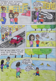 Zaplanowanie i wykonanie komiksu. Opracowanie dialogów. Wykonanie rysunków.